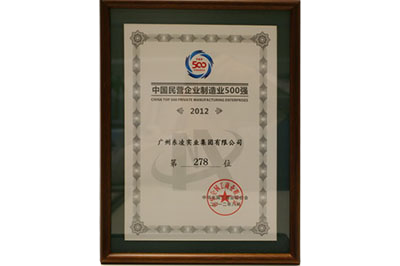 广州九游电子·(中国)官方网站实业集团有限公司荣获国民营企业制造业500强--2012年