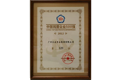 广州九游电子·(中国)官方网站实业集团有限公司荣中国民营企业500强--2012年